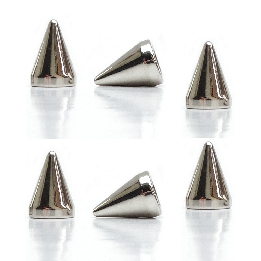 Wir bitten unbedingt um Beachtung: Die hier angebotenen kleinen und sehr leichten Spikenieten 7x10mm sind mit der gelieferten kleinen Schraube ausschließlich für die Verarbeitung in Stoffen oder Leder mit Materialstärke bis 1mm vorgesehen. Die Gewindetiefe in der Niete beträgt zwar 5mm, das eigentliche Gewindefutter jedoch nur ca. 3mm. Bei Verarbeitung in dickeren Materialien ist eine Schraube nötig, die den Materialgegebenheiten (Materialdicke) entspricht, in dem die Nieten verarbeitet werden.